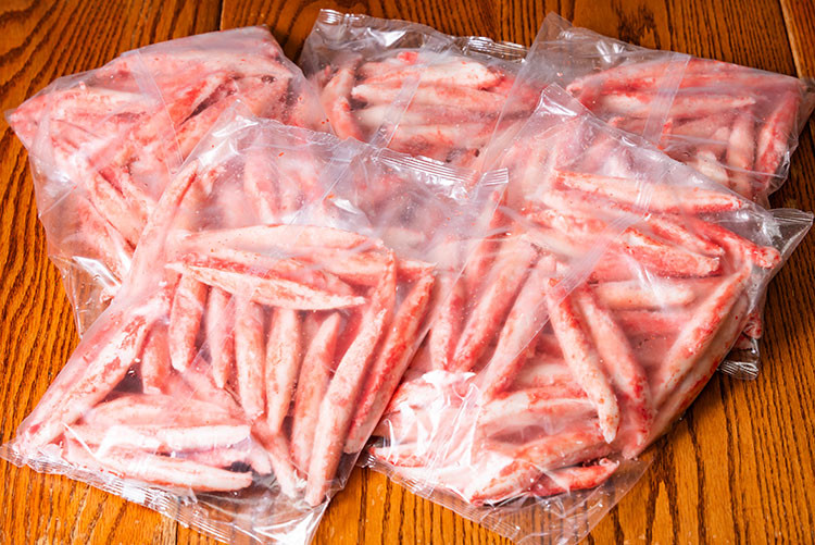 キョクヨーの最高峰を誇る、ロングセラー商品「オーシャンキング」を、さらに進化させた「極」シリーズ。 高品質のすり身を使用し、カニエキス等を加えて繊維状に成形する独自製法で、 限りなく、カニの脚肉の風味に近づけました。カニ本来の繊維感とボリュームに加え、 ジューシーな味わいとみずみずしさを追求。そのままでも十分おいしく食べられるのが特長です。 中でも、ズワイガニの脚の身風に仕上げた、しっかりとした食べ応え&プリプリ食感を楽しめる 「オーシャンキングの極・太脚」の820g×5パック 約4kgをお届けします。