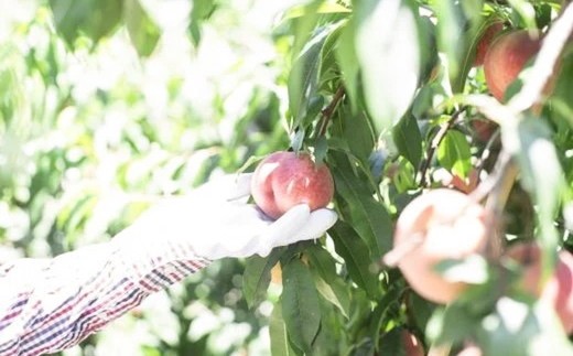 太陽の光をまんべんなく浴びる「平棚仕立て」で枝を整え、樹上で完熟させた桃は、中玉でも香り豊かで甘みが濃く、果肉はしっとり、果汁はほどよくジューシー。