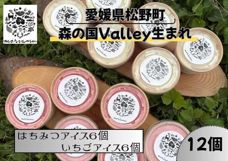 余計なものは加えず厳選素材だけで仕上げた、贅沢なアイス。 はちみつアイス6個&いちごアイス6個 森の国valley生まれ moriamu 厳選素材で作る贅沢デザート | はちみつ 蜂蜜 ハニー いちご 苺 スイーツ デザート アイスクリーム ジェラート 人気 ギフト 贈答用 冷凍 ふるさと納税 愛媛県 松野町 ※北海道・沖縄・離島への配送不可