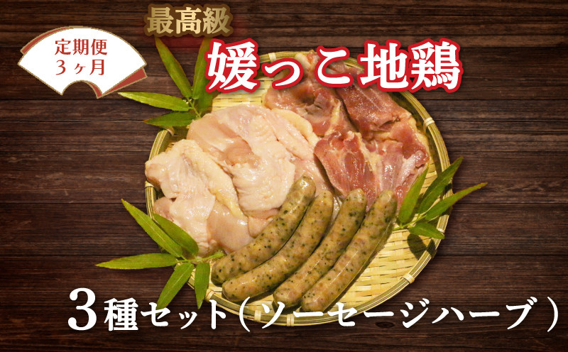 最高級ブランド地鶏「媛っこ地鶏」づくしのセットをお楽しみください! 定期便 3回 数量限定 最高級 地鶏 媛っこ地鶏 セット3種 ソーセージ ハーブ 鶏肉 鶏むね 鶏もも こだわり 小分け チキン ブランド