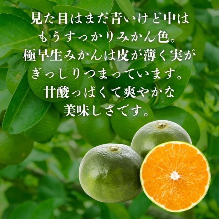 極早生みかんは、果皮が薄く、ジューシーで酸味と甘味のバランスが絶妙なのが特徴です。