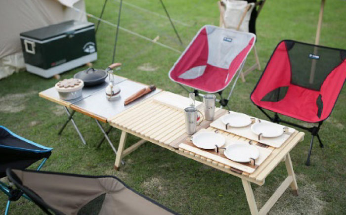 ソロキャンプでも、家族でも十分なスペースを確保したキャンプテーブルで、非日常の食事や団らんをお楽しみください。