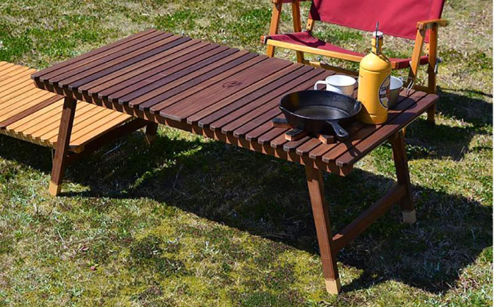 ウッドテーブルを2台連結したりするとファミキャンやグルキャンでもゆったり使えます。