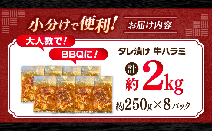 高知の肉のプロが、本気で造る。溢れる肉汁と特製タレ、今夜は贅沢ハラミ祭り。 タレ漬け 牛ハラミ 約250g×8パック 計約2kg【焼肉寛十郎】小分け 個包装 味付け タレ たれ 高知県 お肉 牛肉 贅沢 焼き肉 BBQ バーベキュー 訳あり わけあり ワケアリ はらみ [ATDO015]