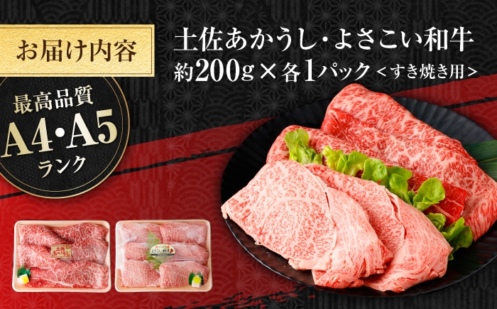 赤身と霜降りのお肉が楽しめる食べ比べセット 土佐あかうしとよさこい和牛 土佐あかうし&よさこい和牛 すき焼き食べ比べ 各種約200g 総計約400g / やわらか ヘルシー うま味凝縮【(有)山重食肉】 [ATAP186]