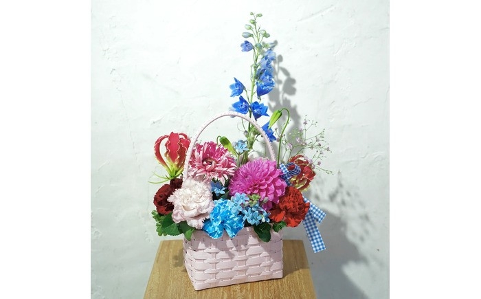 お花 フラワー カラーバスケット アレンジ 映える リビング 装飾 作家もの カゴ 定期便 人気 季節の生花 収納バスケット ハイセンス ギフト 高知
