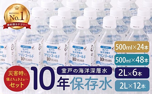 室戸海洋深層水を100%原料にした備蓄水。賞味期限5年以上を保証。塩分やミネラル成分、さらには有機物・バクテリア等を可能な限り除去した長期保存できる飲料水です。 地震などの災害の際、水を確保することは最も重要です。いざというときに水がないことを想像するとおわかりいただけるでしょう。 普段から備蓄として最低限必要な水の量は、大人1日2L×3日分=6リットルと言われています。 2人家族なら12リットル、3人家族なら18リットル、4人家族なら24リットルとなります。 「備蓄水」はクリーンな室戸海洋深層水に超微細ろ過(半透膜を使用した逆浸透)をかけ、水以外の物質を可能な限り除去し、5年以上保存が可能な純水(硬度0)です。 積み重ねても崩れにくい頑丈なペットボトルを使用しているので非常時でも安心です。 飲料水としてはもちろんのこと、料理(炊き出し)、赤ちゃんのミルク作り(粉ミルクのミネラルバランスを崩しません)、お薬を飲むときの水(ミネラルを取り除いているため、お薬の効果を邪魔しません)にも最適です。 また、ラベルには「災害用伝言ダイヤル」の使い方を記載しています。 海洋深層水とは、太陽の光が届かない水深200メートル以深の水温が急に冷たくなっている層にある海水のことで、地下水や河川水と全く水源が違うため、化学物質にさらされる機会が少ない極めて清浄な水です。本商品は、高知県室戸沖2,200メートル、水深344メートルから汲み上げた海洋深層水を100%原料にしています。「備蓄水」は独自の技術で生まれたRO水で、RO水とは、半透膜(100万分の1ミリの超微細メッシュ)を使用して逆浸透ろ過した水のことです。このろ過を2回繰り返し、塩分やミネラル成分、さらには有機物・バクテリア等をほぼ完全に除去し、可能な限り硬度0に近づけてピュアな純水にしています。「備蓄水」は、厚生労働大臣により承認されたHACCP(ハセップ:原料の入手から製造、出荷までのすべての工程において食品の安全性を確保する宇宙食レベルの衛生管理手法)を経て、食品安全の国際規格ISO22000を取得した工場で製造された飲料です。