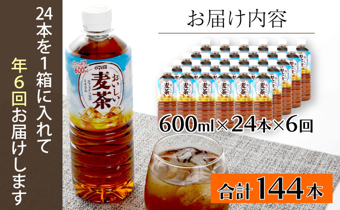 頒布会 【 6回 定期便 】 DyDo ダイドー おいしい麦茶 合計144本 600ml×24本 × 6回 麦茶 むぎ茶 カフェインゼロ お茶 飲料水 ペットボトル ドリンク 定期便 6ヶ月 頒布会 定期便6回 定期便お茶 定期便麦茶 定期便ドリンク 定期便飲み物 定期便飲料 箱 ケース 有名 人気 おすすめ ランキング 高知県 室戸市