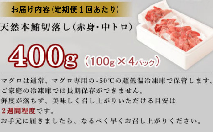 天然本マグロの切落し400gを定期便≪3ヶ月連続≫にて、合計1.2㎏お届けします!