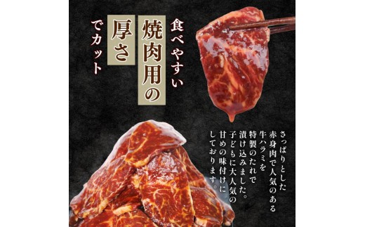 食べやすい焼肉用の厚さでカットし、さっぱりとした赤身肉で人気のある牛ハラミを特製のたれで漬け込みました