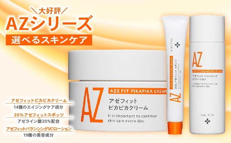 大好評 アゼフィットシリーズ スキンケア 【選べる】スキンケアセット 3品 単品あり 医師監修 アゼフィットピカピカクリーム バランシングVCローション ニキピタ アゼフィットスポッツ ビタミンC セラミド マッサージ 乾燥肌 赤み ほうれい線 くすみ 海洋深層水 美容液 化粧水 20% NIKIPITA 送料無料 高知県 室戸市