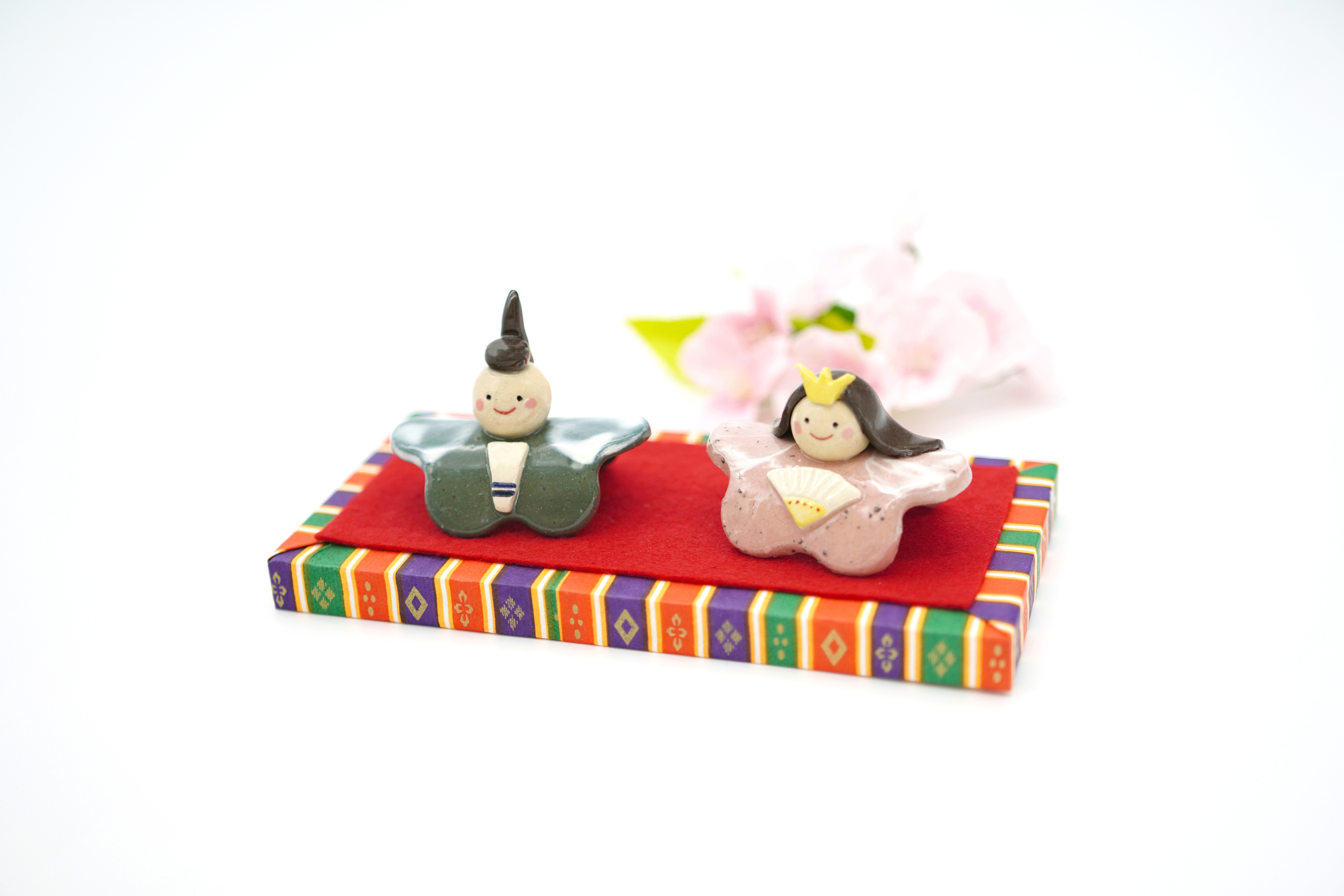 陶器 かわいい ひな人形 コンパクト 飾り台付き ひなまつり お祝いのギフトに