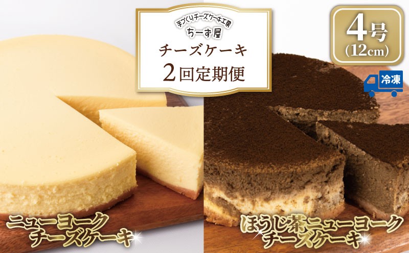 ちーず屋自慢のチーズケーキを冷凍便でお届けいたします! チーズケーキ 2回定期便 食べ比べ ( ニューヨークチーズケーキ / ほうじ茶 ) 4号 12cm ベイクドチーズケーキ ちーずけーき お取り寄せ お菓子 洋菓子 洋風スイーツ ほうじ茶スイーツ ようがし 冷凍 チーズ ケーキ おすすめ 焙じ茶 お茶 お茶スイーツ 誕生日 バースデーケーキ クリスマス 贈答 ギフト 人気 数量限定 手作り ケーキ定期便 スイーツ定期便 ちーず屋 安芸市 高知県