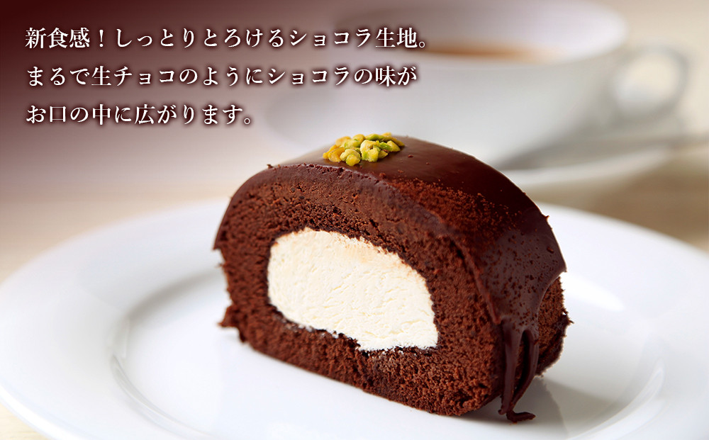 驚くほどくちどけの良いショコラスポンジと、ジャージークリームたっぷりのロールケーキをセットにしました。