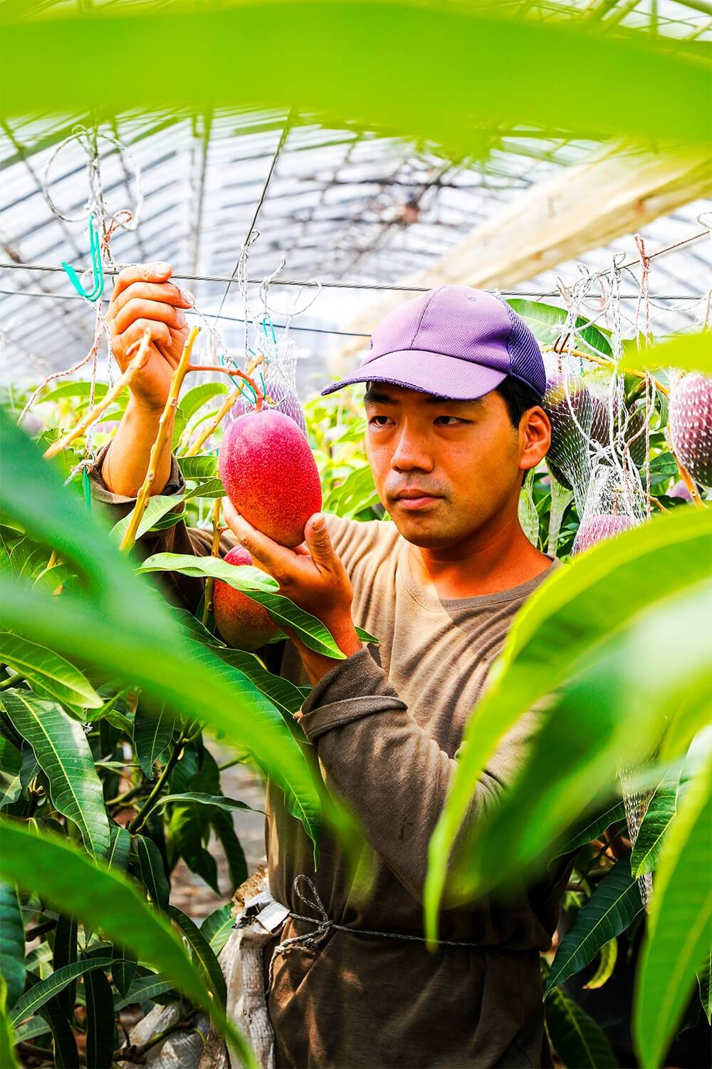 メロンもマンゴーも水分調節を徹底して管理しているので、高糖度のフルーツができます。