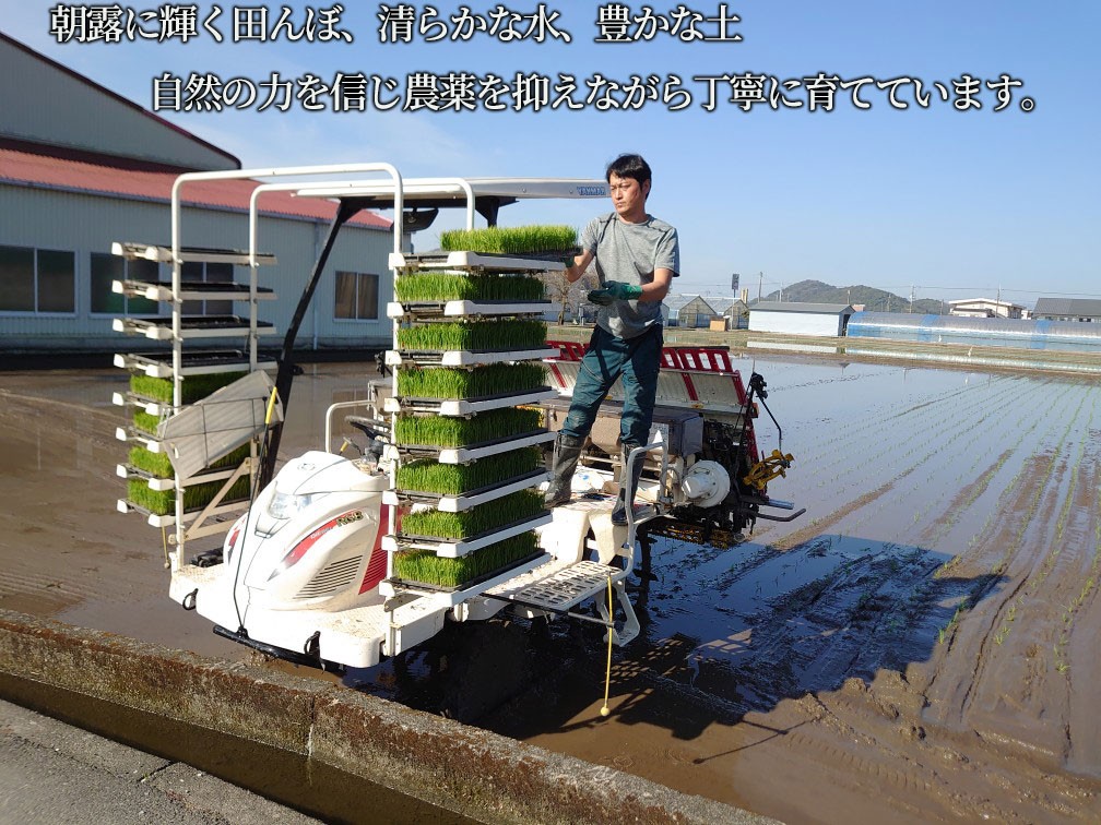 当社のお米はできるだけ農薬を使わない栽培をしています。消毒は行わず、除草剤のみの減農薬栽培米です。