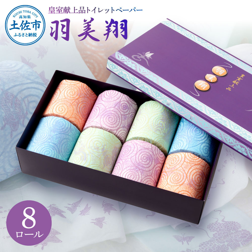 時間をかけてふんわり仕上げたまるでシルクのようなトイレットペーパー トイレットペーパー 無香料 天然パルプ100% 羽美翔 8ロール入り 30m ダブル 2枚重ね プリント入り 柄入り 土佐和紙 上品 皇室献上品 日用品 消耗品 日本製 プレゼント ギフト