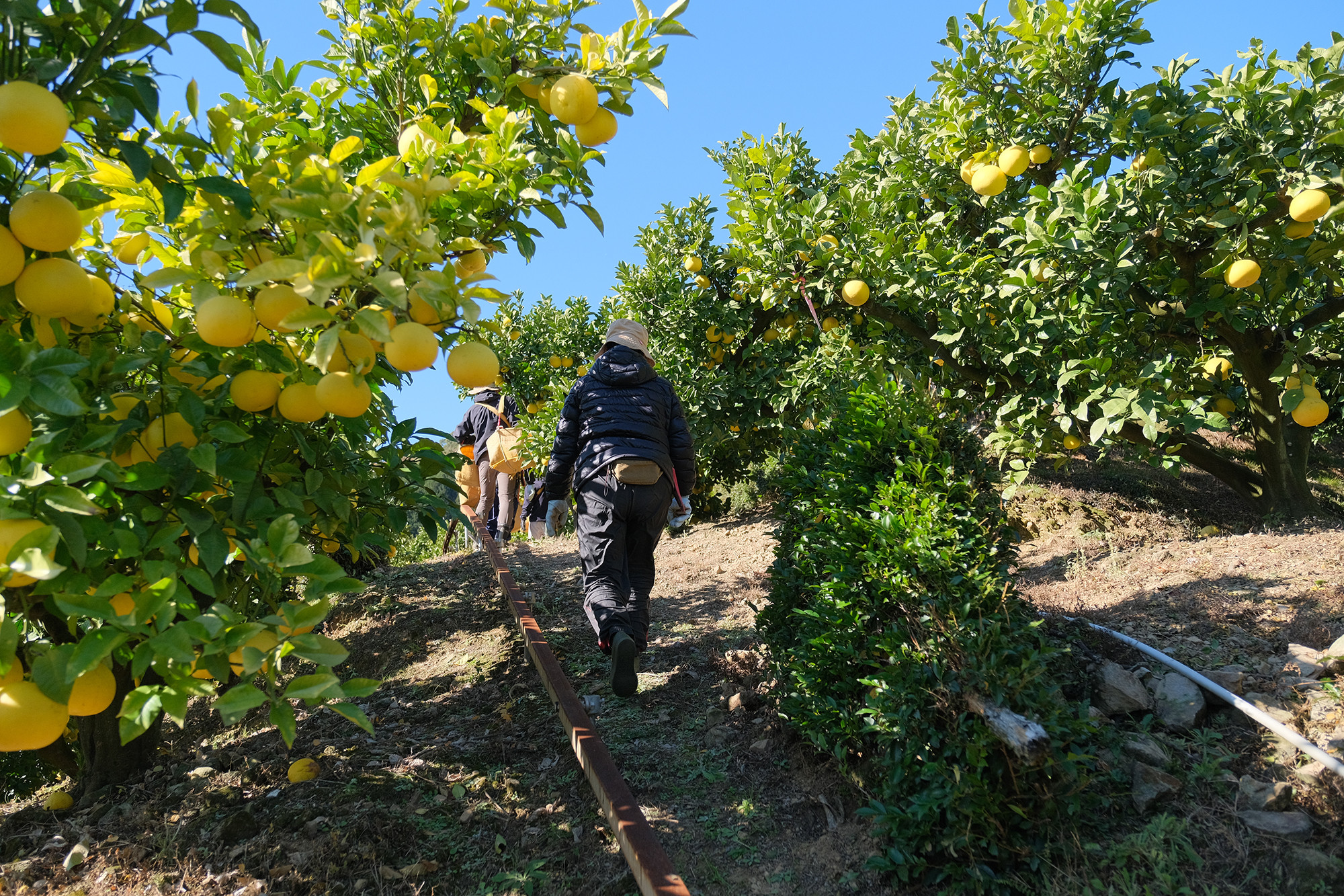 現在は3代目となり長年培ってきたノウハウとTAMURA KAJUENの文旦園は南国高知の太陽の光がたくさん当たる南向けの斜面、水はけの良い好条件の山で丹精込めて育てています。