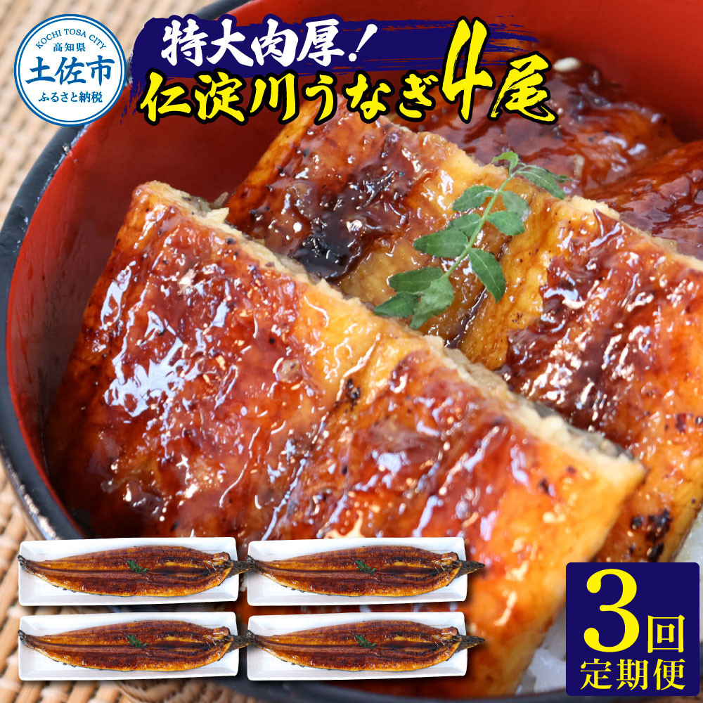 【3回定期便】仁淀川特大肉厚うなぎ4尾セット 定期コース 3ヶ月 タレ付き うなぎ 鰻 ウナギ 国産 蒲焼き かば焼き 1尾200g超え 仁淀川 太化うなぎ 養殖 おいしい 人気 冷凍 夏