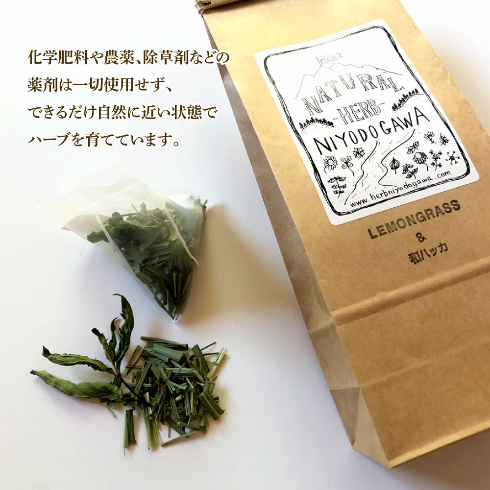 ハーブ仁淀川産 自然栽培ハーブ ハーブティー ティーバッグタイプ ハーブ仁淀川産 自然栽培ハーブ レモングラス&和ハッカブレンド ハーブティー ティーバッグタイプ 3個セット 7袋入り×3個 ギフト ティーバッグ 無農薬 リラックス 眠り 高知県産