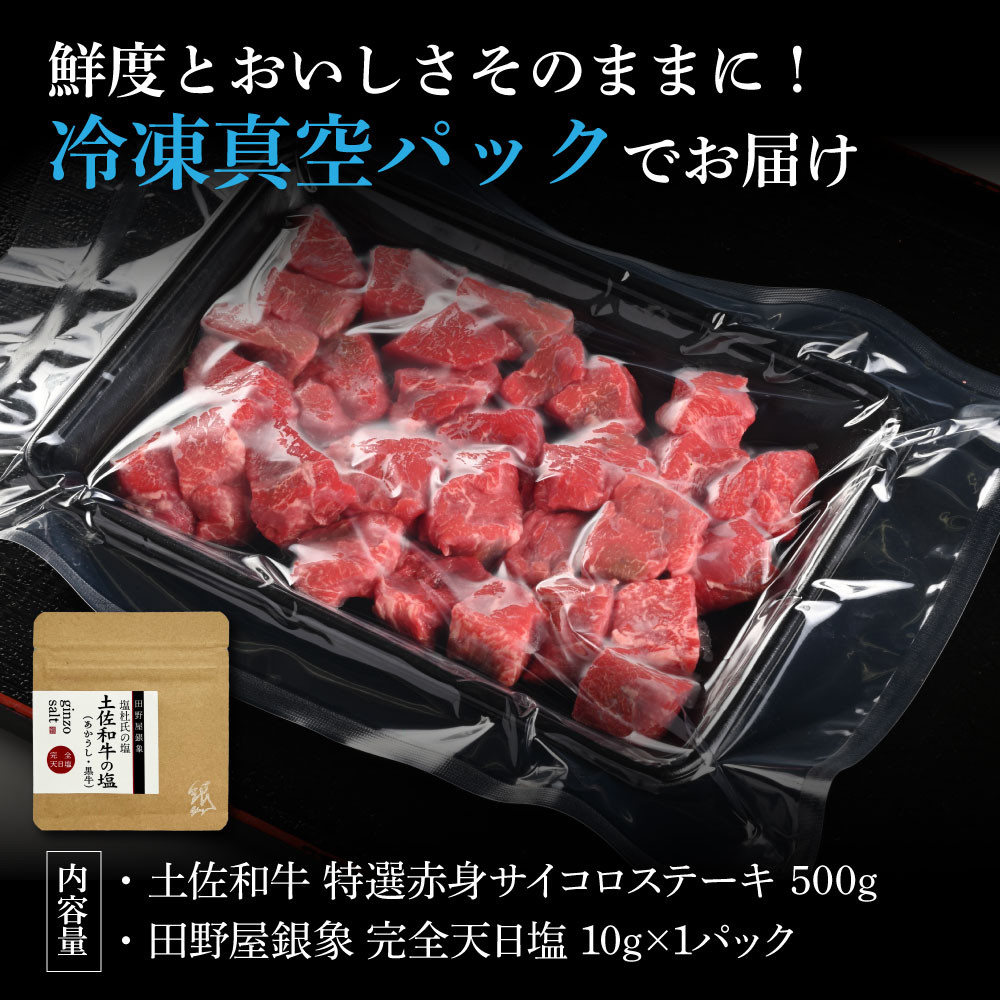 高知の老舗焼肉店 天下味独自の「エイジング工法」を用い柔らかく美味しい食肉に。 土佐和牛 特選赤身サイコロステーキ500g 田野屋銀象完全天日塩1P付き 長期熟成肉 田野屋銀象 完全天日塩付き 赤身 ステーキ 肉 お肉 和牛 牛肉 国産 牛 熟成肉【株式会社LATERAL】 [BQAU056]