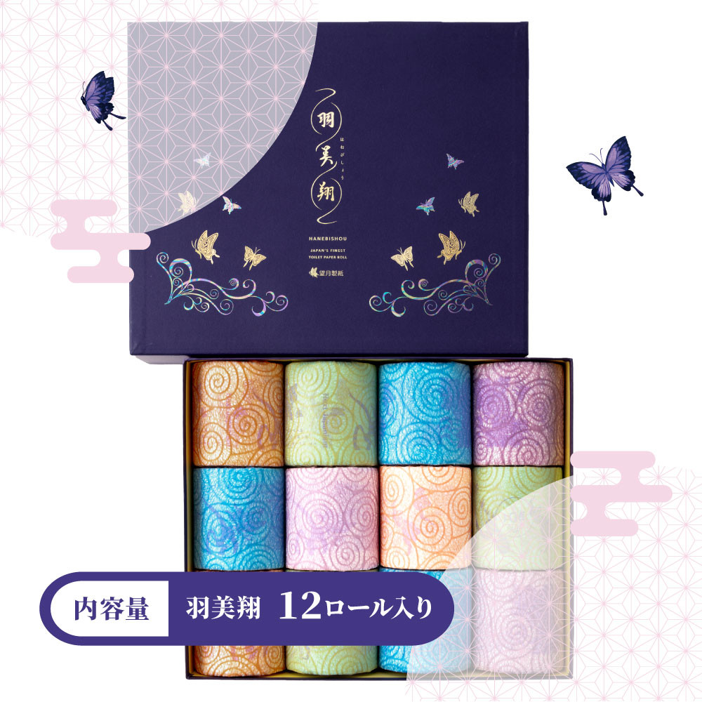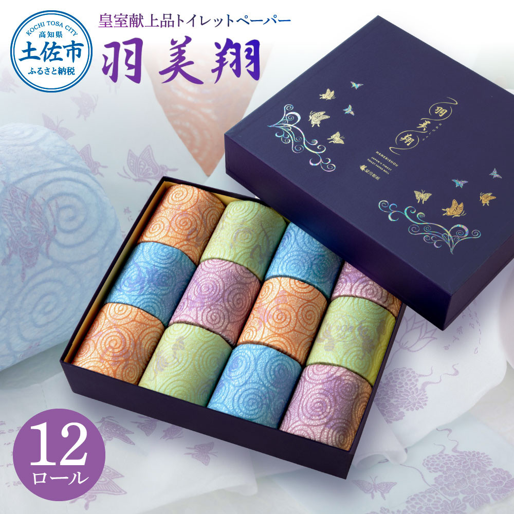 時間をかけてふんわり仕上げたまるでシルクのようなトイレットペーパー トイレットペーパー ダブル 無香料 天然パルプ100% 羽美翔 12ロール入り 30m 2枚重ね プリント入り 柄入り 土佐和紙 上品 皇室献上品 日用品 消耗品 日本製 プレゼント ギフト