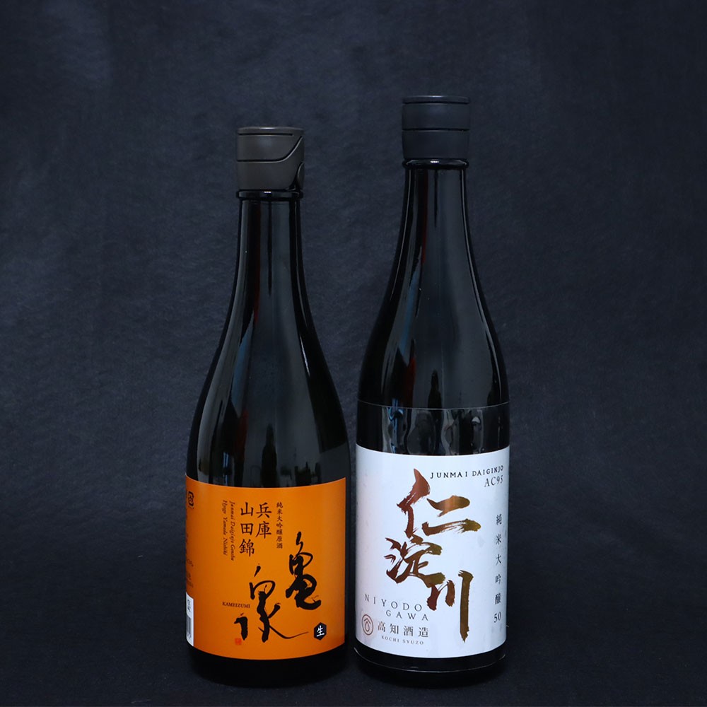 | 容量 | 仁淀川純米大吟醸50%AC-95:720ml×1本 亀泉純米大吟醸50%:兵庫山田錦×720ml 1本 上記2品を緑色2本箱に入れて発送 重量:3kg弱 |