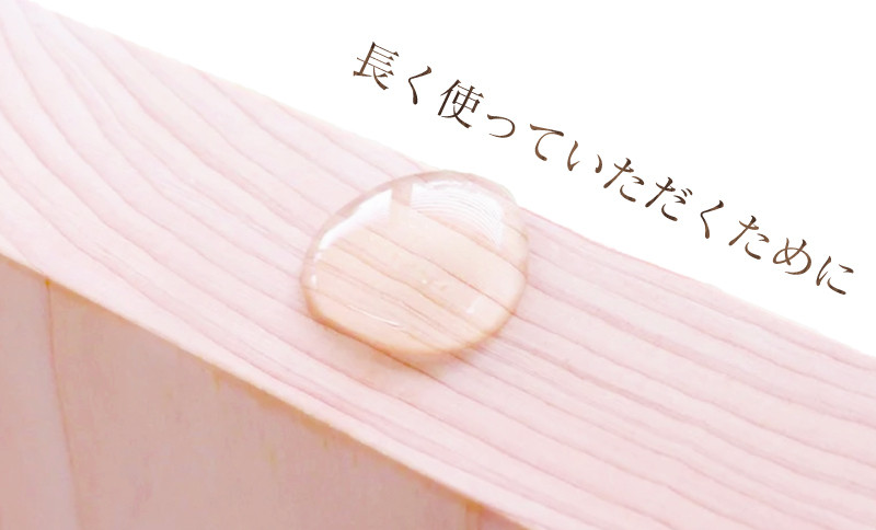 樹齢七十年から八十年のいちまい板を使用していますので、油成分の含有率も高く、水切れが早く、抗菌力にも優れています。