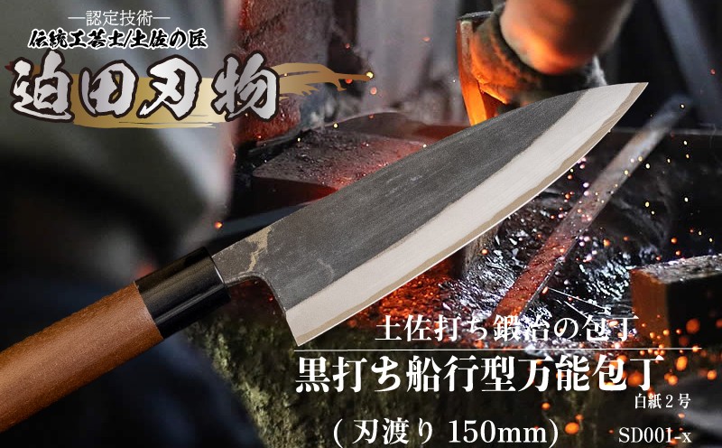 土佐の鍛冶職人が打つ「本物の和包丁」 日本三大刃物 土佐打ち刃物 【 黒打ち舟行型 万能包丁 】 15cm 白紙2号 鍛冶職人 迫田刃物 キッチン用品 日用品 プロ 職人 包丁 キッチン 包丁 和包丁 ほうちょう 高知県 須崎市 SD001