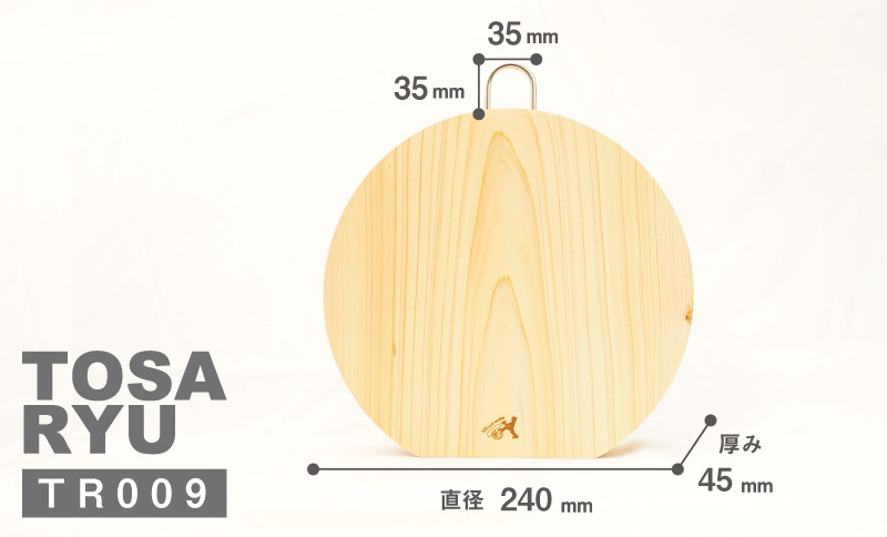 四万十ひのき 一枚板 4面無節 厚型 檜 まな板 フック付き ひのき まな板 直径 240×265×45mm 丸型 厚型 須崎 高知 いごっそまな板 TR009_x