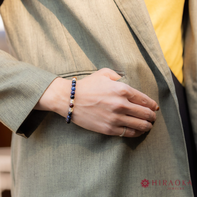 などのパワーストーンが含まれ、運とツキを呼び込み、仕事の成功や金運アップにつなげて豊かに暮らせるよう願った意味のパワーストーンブレスレットです。