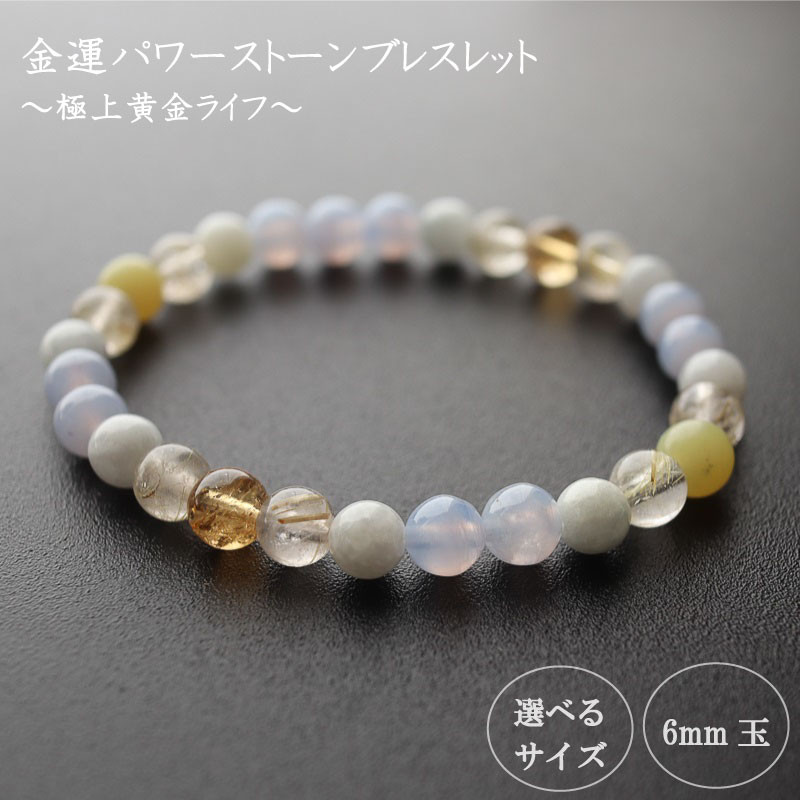 などのパワーストーンが含まれ、お金と時間の両方に余裕を持ち、幸せな人生を送れるよう願った意味のパワーストーンブレスレットです。