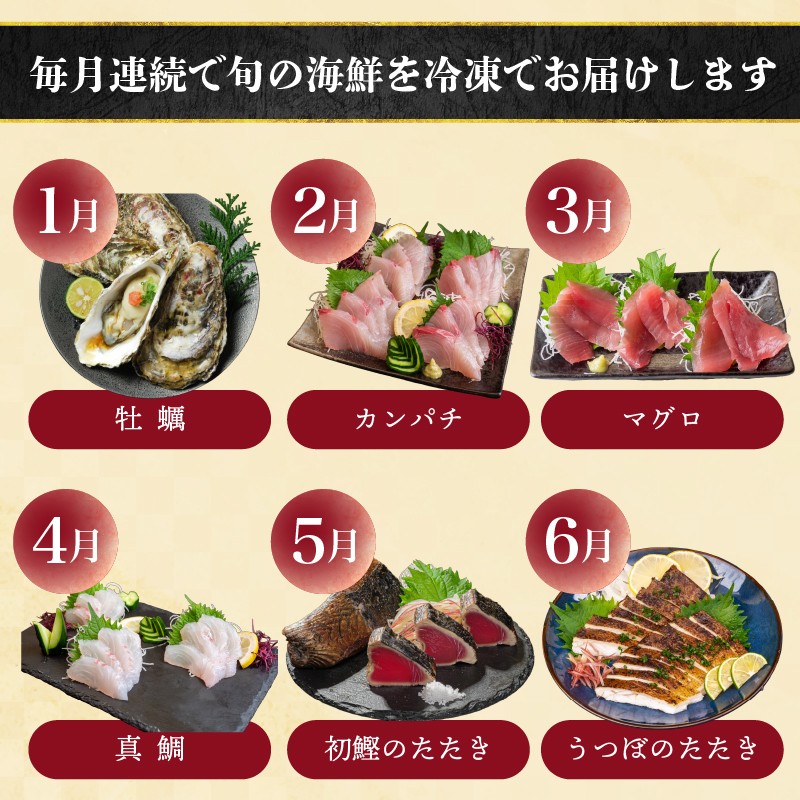 【須崎 の 鮮魚 定期便 】旬 の 刺身 定期便 6回 コース 野島水産 が お届け! | 下処理済み かつお かつおのたたき 藁焼き タタキ 鯛 真鯛 マグロ 牡蠣 しらす 伊勢海老 セット 高知 産地直送 たい まだい 高知県 須崎市 NS10000_2x