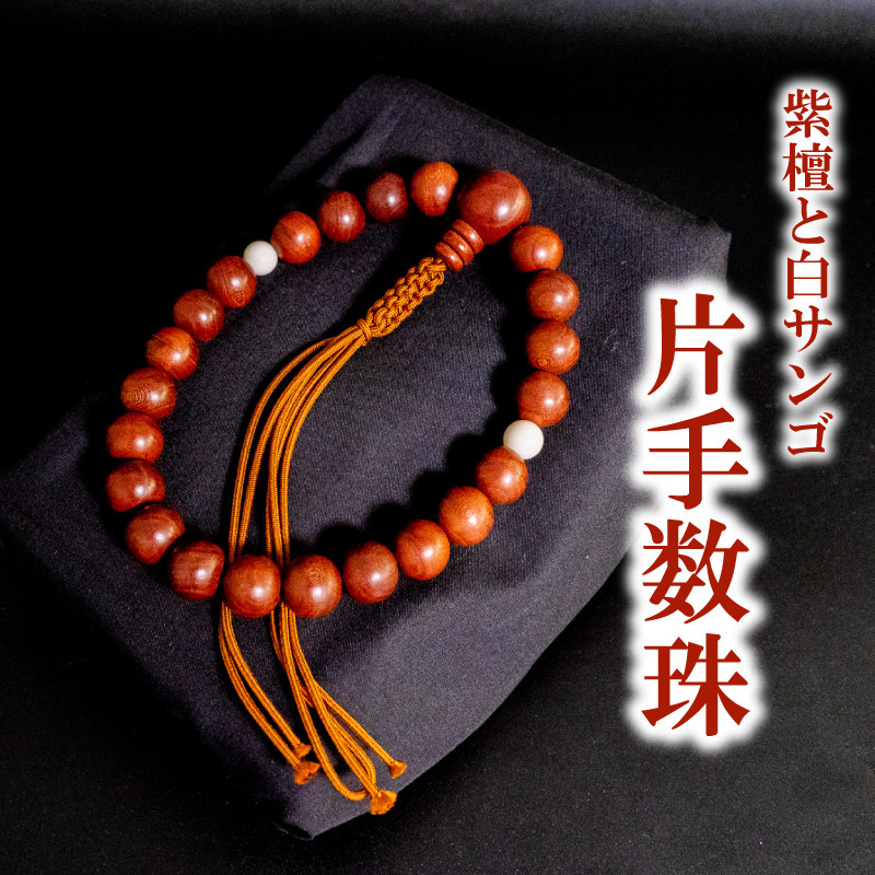 男性の方の手の大きさにぴったりの数珠 男性用 紫檀と白サンゴ片手数珠 数珠 仏具 アクセサリー ギフト 贈り物 プレゼント TP061