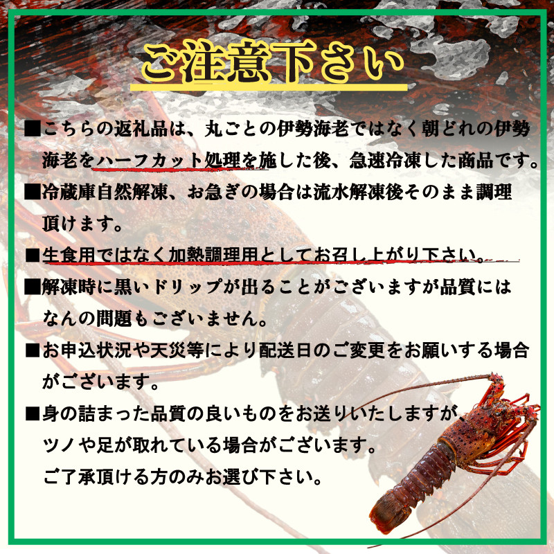 お祝い事や記念日に ハーフカット伊勢海老 4ピース1.4kg以上 冷凍 ( 特大サイズ 急速冷凍 えび エビ 高級 鮮魚 海鮮 魚介 刺身 焼き物 汁物 ギフト 贈答 贈り物 祝い 歳暮 中元 年末 年始 早期 予約 ) IKY081_x
