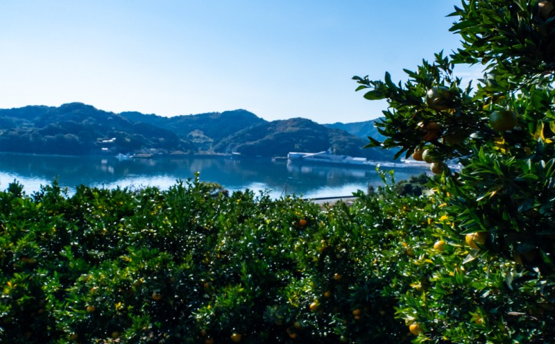 橋田果樹園は浦ノ内の海が望める急傾斜地にあり、