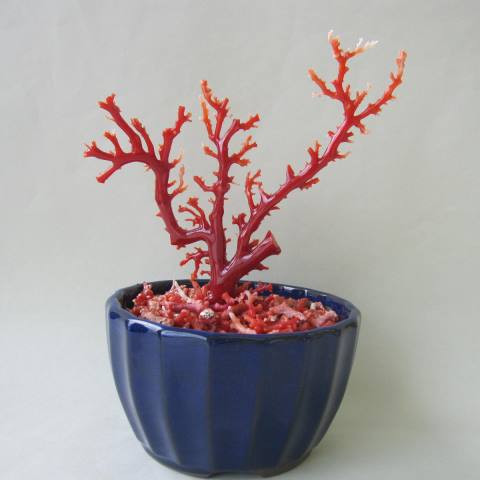 | 容量 | 高知沖産血赤珊瑚(カラーグレード:4):W15cm×H15cm、根元部分の直径:約12mm、重さ:45.4g *高知産赤珊瑚チップ:530g *鉢(陶器)の大きさ:直径約12cm、高さ7cm ◎接着などはしておりませんので、自由にアレンジを楽しんでいただけます。 |