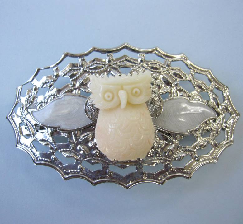 幸福のシンボル、幸せを呼ぶ鳥「フクロウ」が可愛いバレッタです。