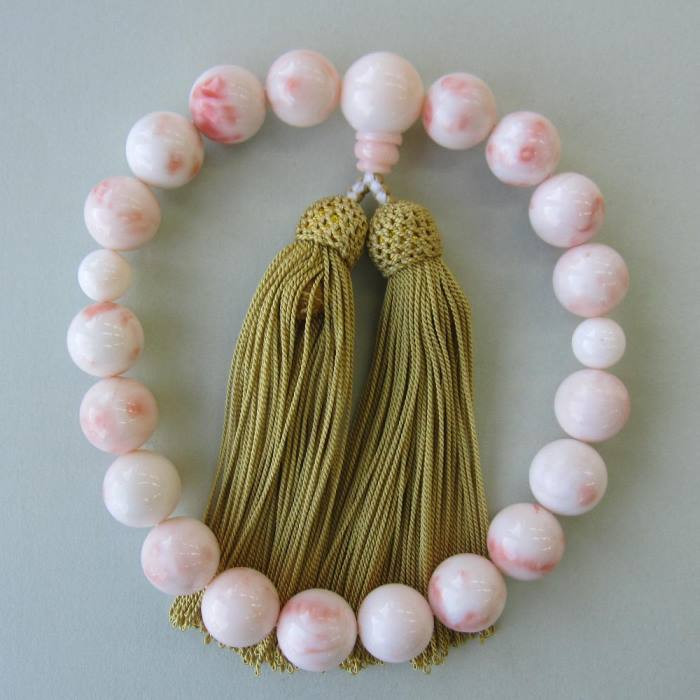 関連キーワード: 念珠 数珠 女性用 深海珊瑚 ピンク珊瑚 大粒 白地 斑紋 美しい 宝石 アクセサリー 魔除け 厄除け お守り お嫁入り道具 桐箱 高級 天然素材 正絹 房 からし色 14mm 15mm 9.8mm 15.7mm 三つ穴 仏具 宗教用品 ジュエリー 工芸品 伝統工芸 土佐 高知 宿毛 ふるさと納税