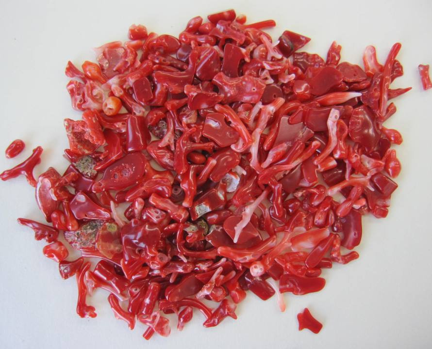 大きさや色も形も様々な天然赤珊瑚のチップです。