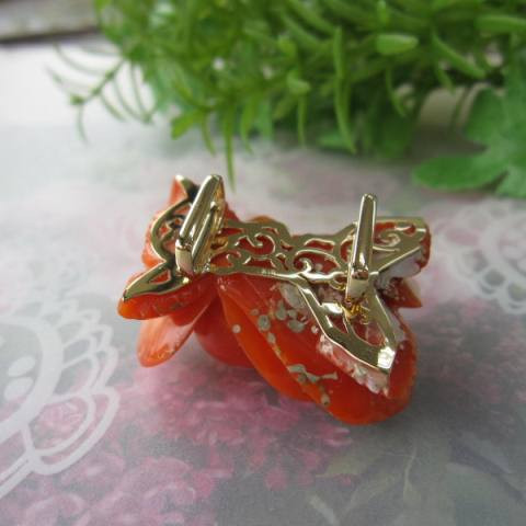 | 容量 | 高知産赤珊瑚(カラーグレード:3):約H29mm×W37mm、厚み:約18mm、 金具:K18(裏張り)、重さ(金具込):25.8g |