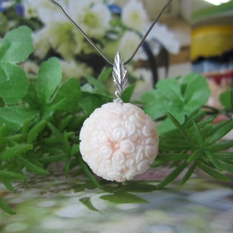 ほんのりピンクがかった珊瑚に花びら一枚一枚が美しいペンダントです!