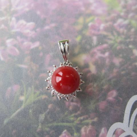 | 容量 | 高知産血赤珊瑚丸玉(カラーグレード:4.5):6.5mm玉、 ペンダント(バチカン部分除く):直径約10mm、厚み:約3.5mm、 ダイヤモンド:0.21ct、重さ(金具込):2.5g、金具:プラチナ900、 ペンダントトップのみ |