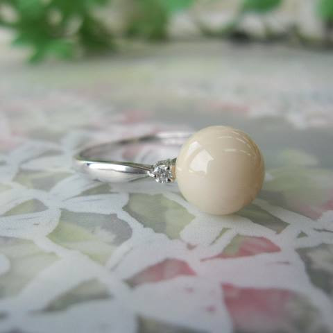 | 容量 | シナ海珊瑚(カラーグレード:2):8.8mm、金具:Pt.900、 ダイヤ:0.06ct、リングの重さ:2.9g、リングサイズ:現状約13号 |