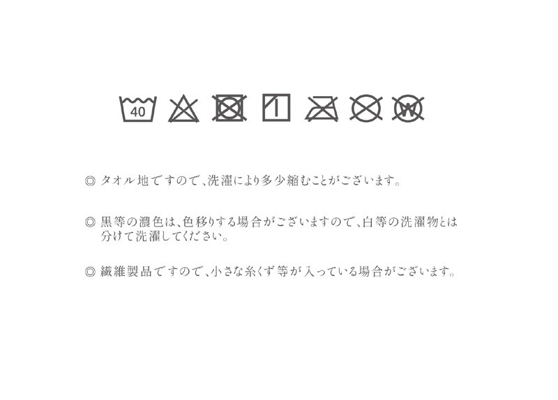 ◎タオル地ですので洗濯すると少しずつ縮みが発生する場合がございます。