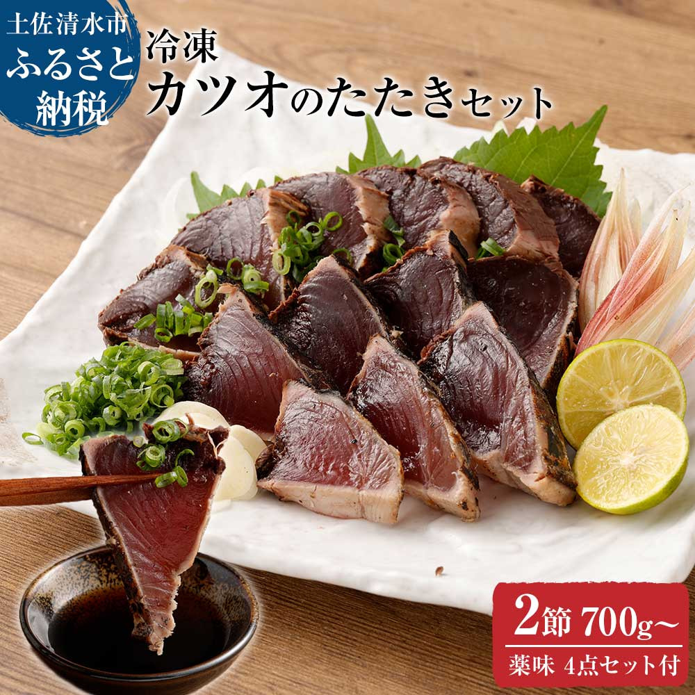 本場高知の漁師町土佐清水から鰹のたたきをお届け! 土佐のカツオのたたき冷凍2節(計約700g~)漁師町伝統タレ・にんにく・ネギ付 鰹 かつお 刺身 タタキ おつまみ おかず 惣菜 新鮮 海鮮 魚介 真空 冷凍 配送【R00517】