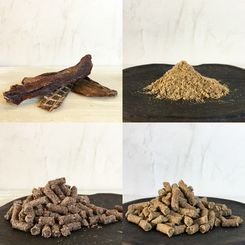 狩猟で得られる代表的な獲物であるイノシシとシカの肉を、希少な栄養が豊富な内臓をバランスよく配合した、無添加・穀物不使用のドッグフードです。
