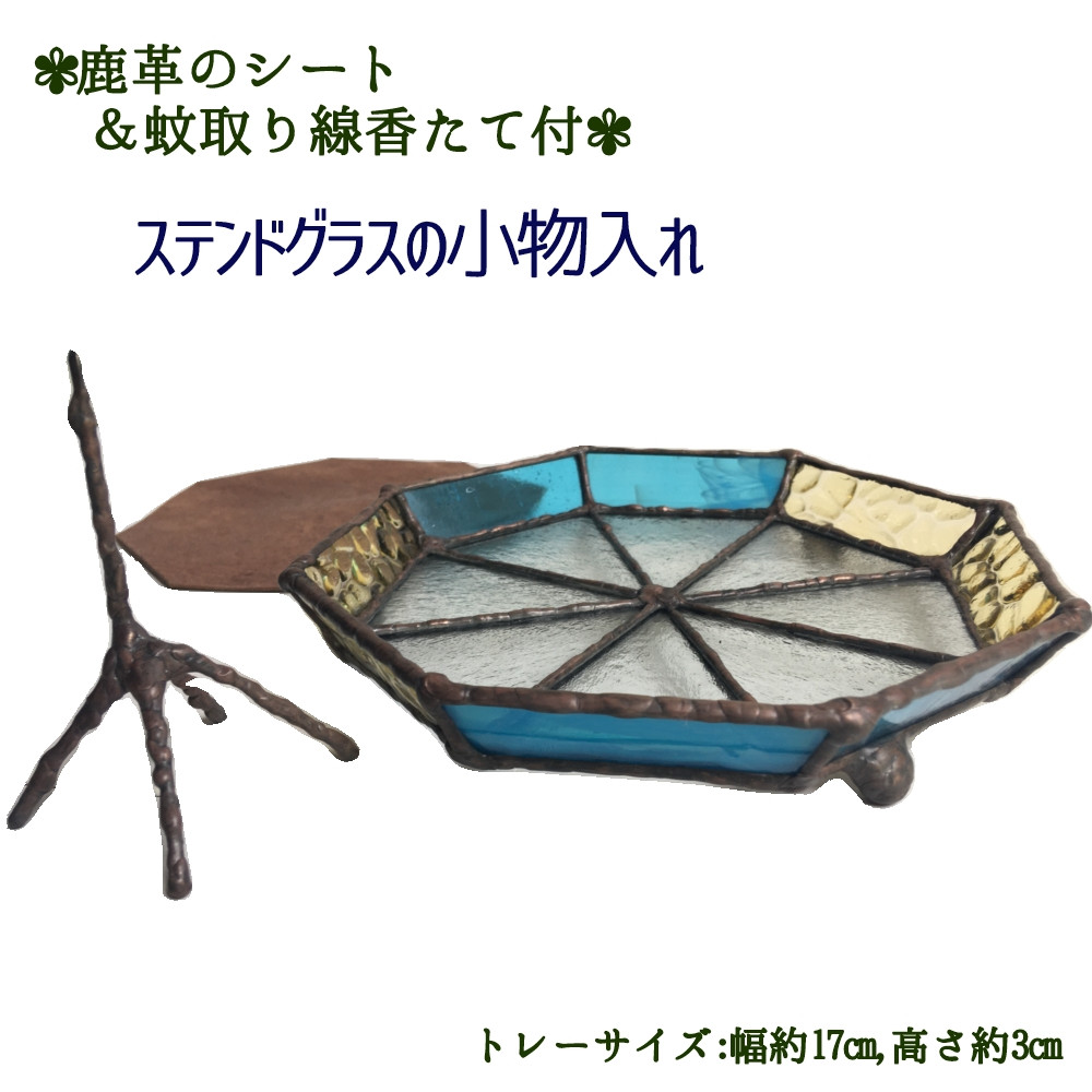 ステンドグラスの小物トレー(八角形C)鹿革のシート&蚊取り線…