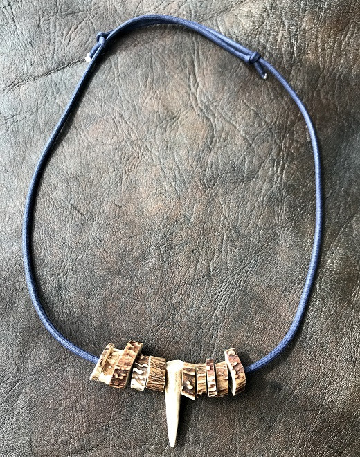 自ら獲った鹿の角を用いて作成したネックレスです。