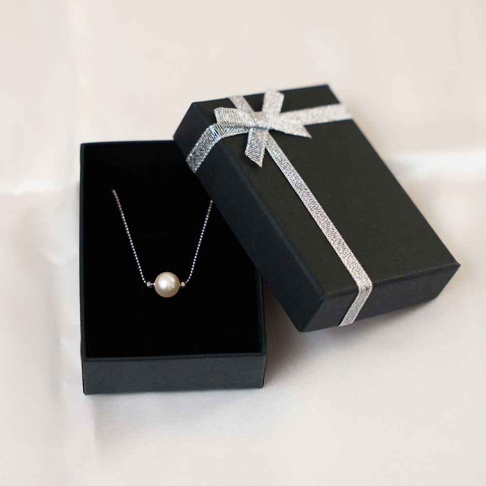 チェーンはロジウム加工を施したシルバーで、黒ずみなどに変色しにくく、高級感ある輝きを放ちます。